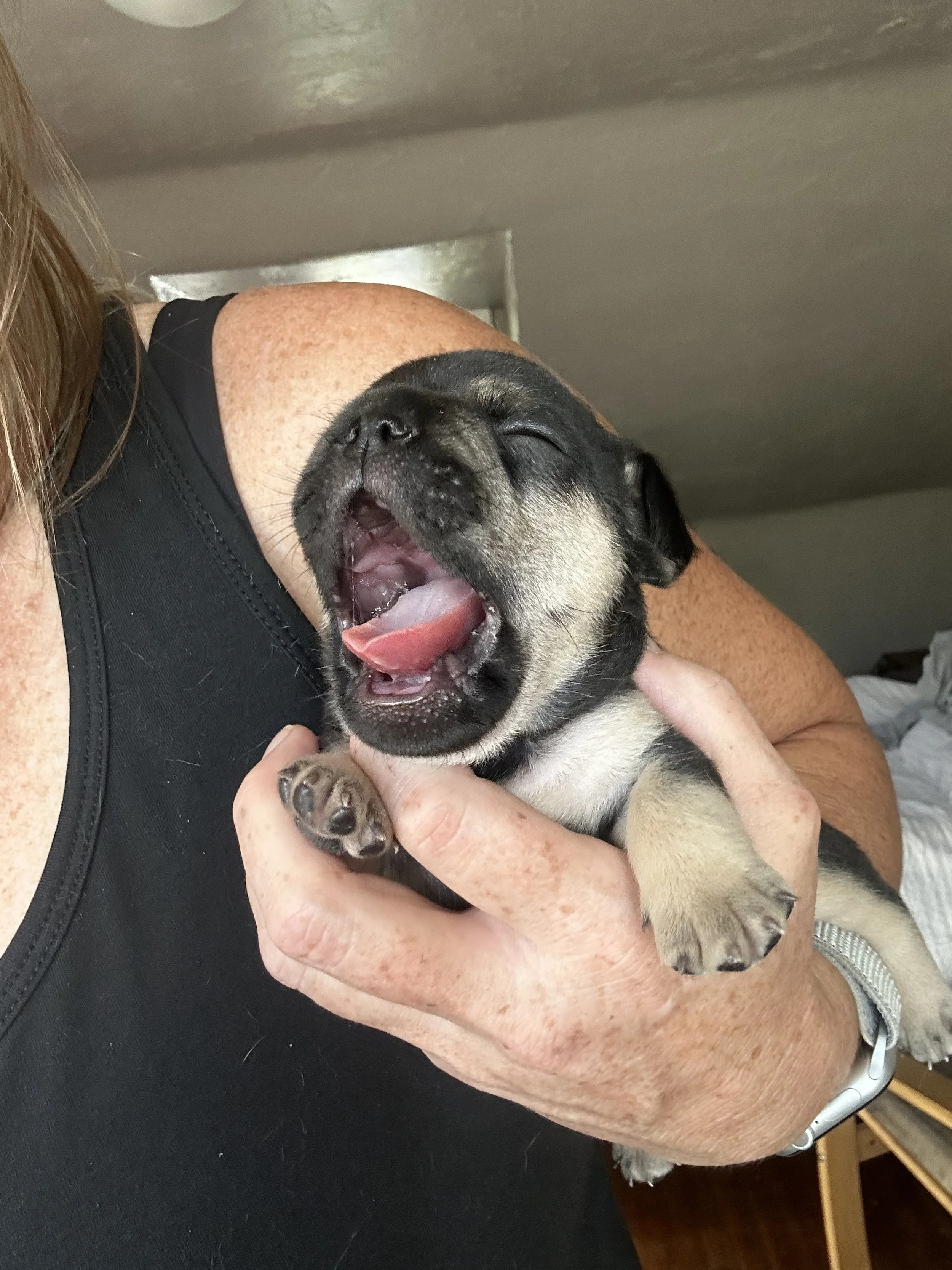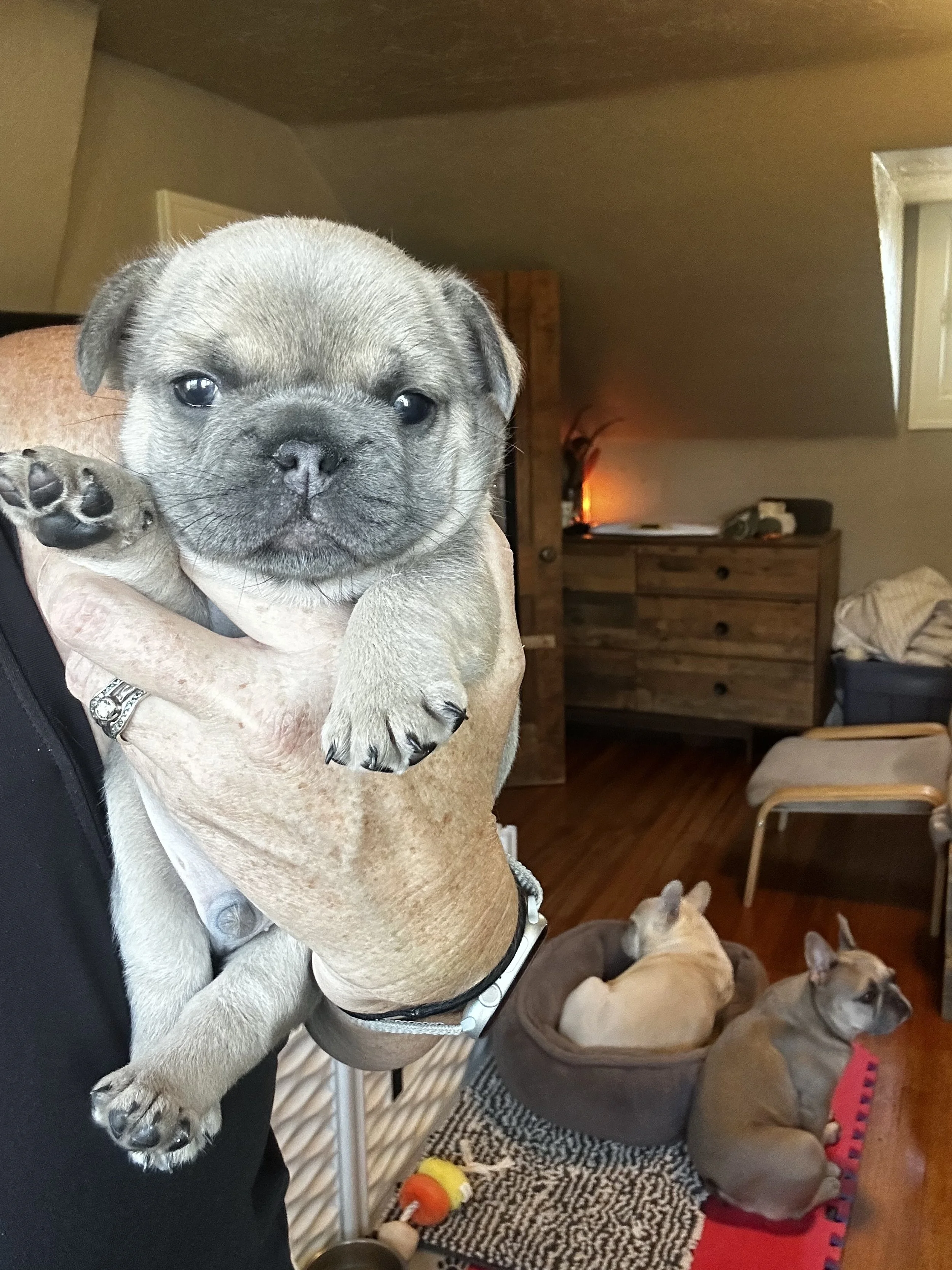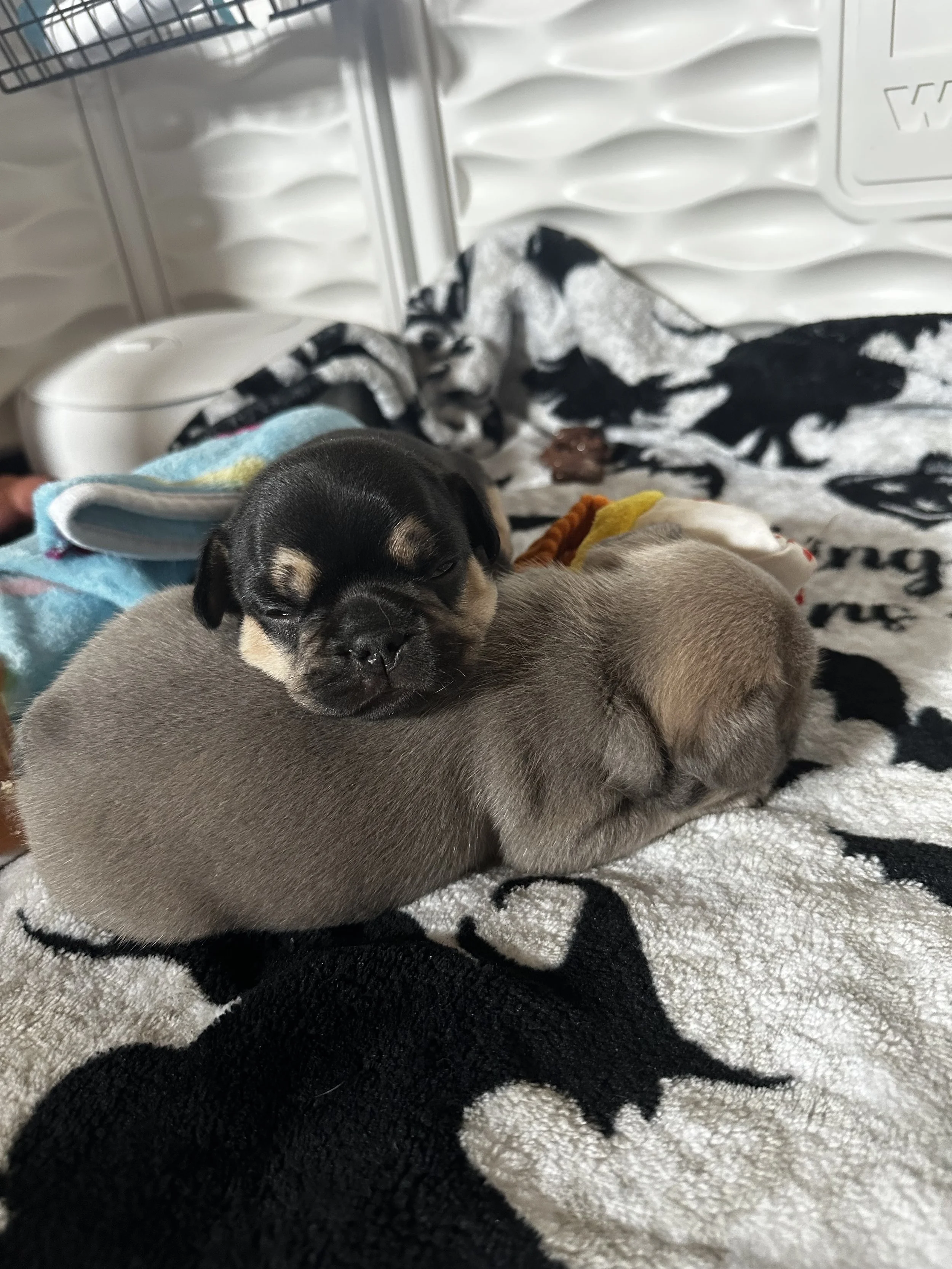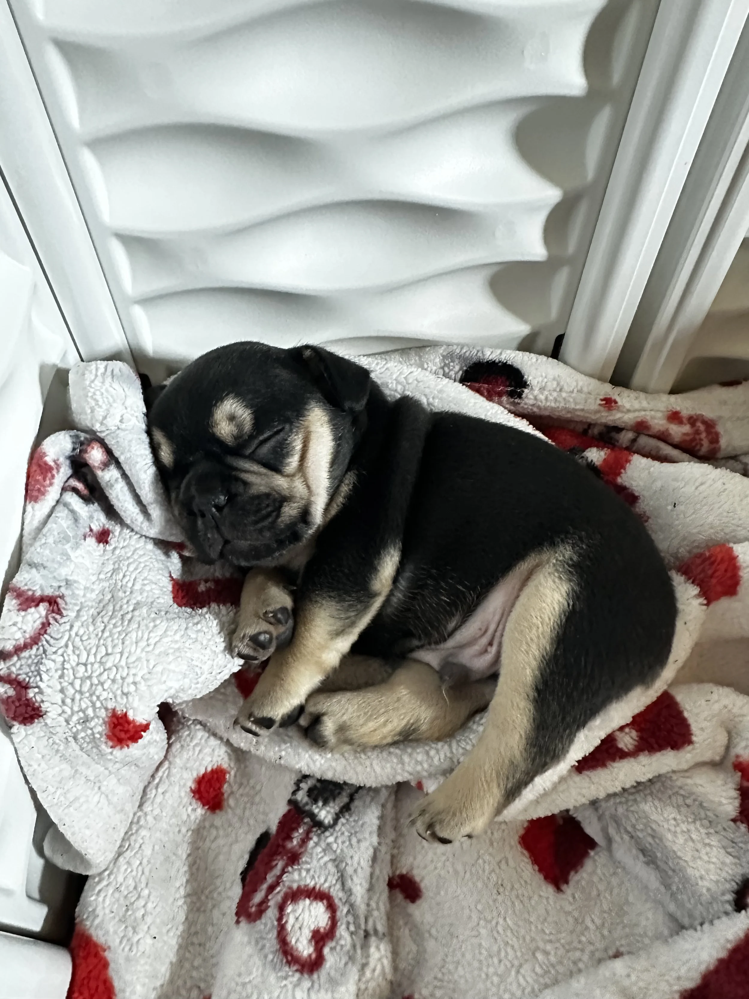 Meet Charlie! He is small and compact and has been since birth, our amazing vet said he was the smallest frenchie she has had in a while! But don’t let that fool you, he is super strong and love to play.
